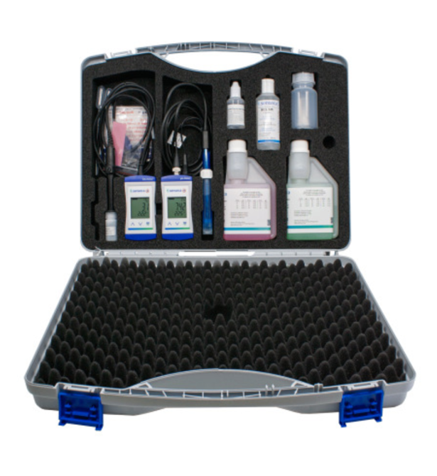 • Kit completo para medición simultánea de oxígeno disuelto y pH en campo.