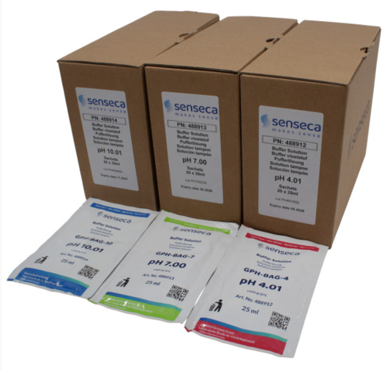 El GPH-BAG de Senseca es una solución buffer de pH lista para usar, en prácticos sobres desechables de 25 ml. Disponible en valores pH 4, 7 y 10, asegura máxima exactitud con trazabilidad NIST. Su diseño portátil y de un solo uso evita la contaminación de la solución, lo que lo convierte en la opción ideal para calibraciones rápidas en campo o laboratorio.